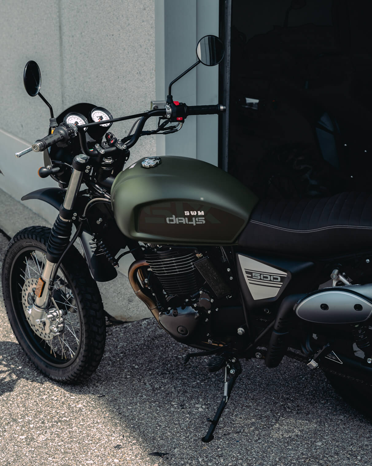 Mehr als nur eine Hommage na die Scrambler der 70er Jahre. Mit kraftvollem Euro-5-Einspritzmotor, einstellbarem Fahrwerk und ABS-Scheibenbremsanlage ist die SIX DAYS 500 technisch am Puls der Zeit. Ihr bis ins kleinste Detail authentische Design spiegelt die Zeit der legendären Scrambler Motorräder auf atemberaubende Art und Weise wider.
